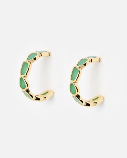 Women's White Addison Green Stone Inlay Large Hoop Earrings