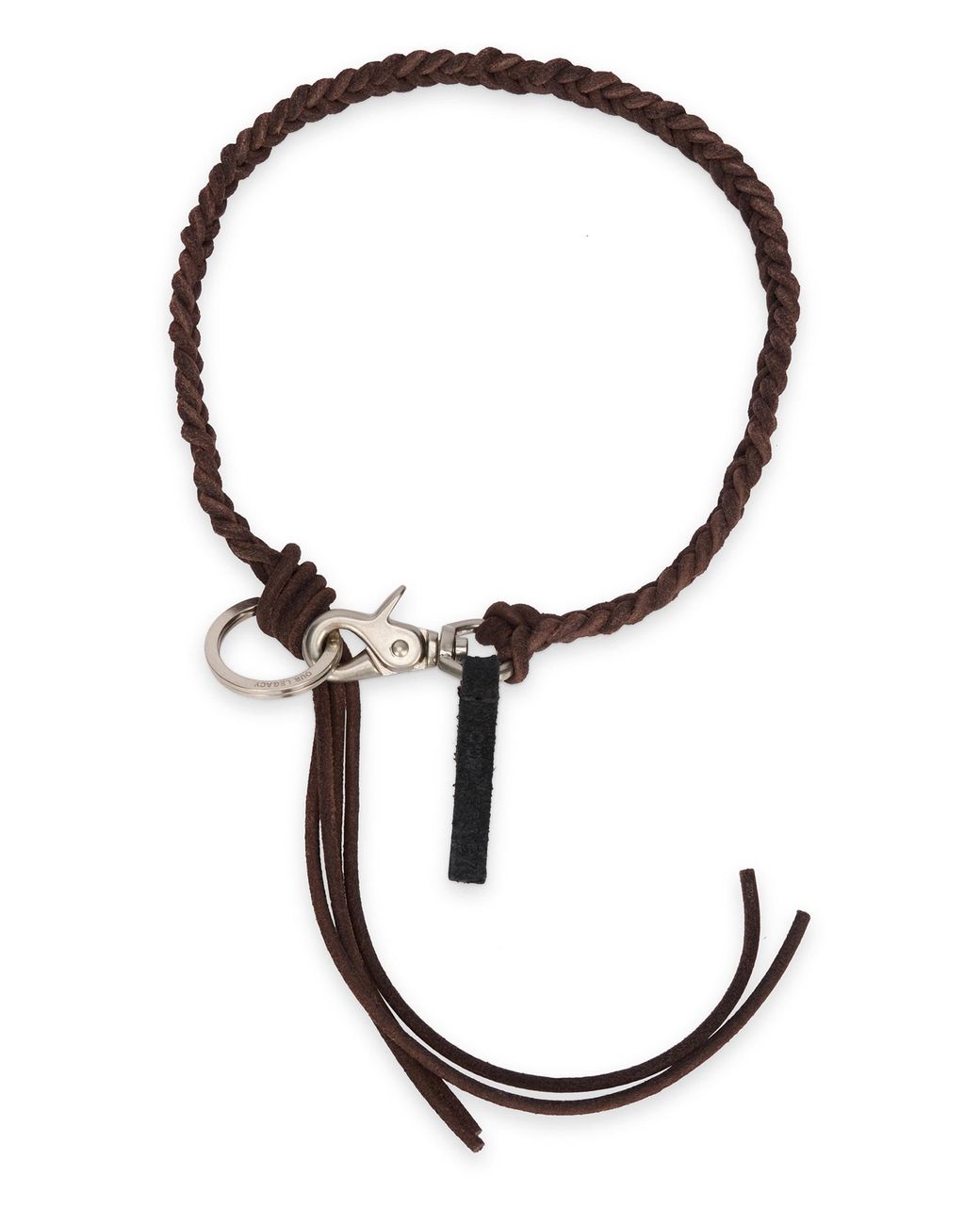 Leather keychains of high quality, characterized by a simple and elegant design. This accessory is extremely lightweight and comfortable to wear, ideal for everyday use or special occasions. Available in a dark brown shade, it easily matches different styles and outfits. Length: 40 cm Width: 1 cm 100% Bovinesuede Colour: black