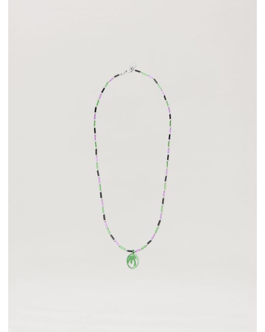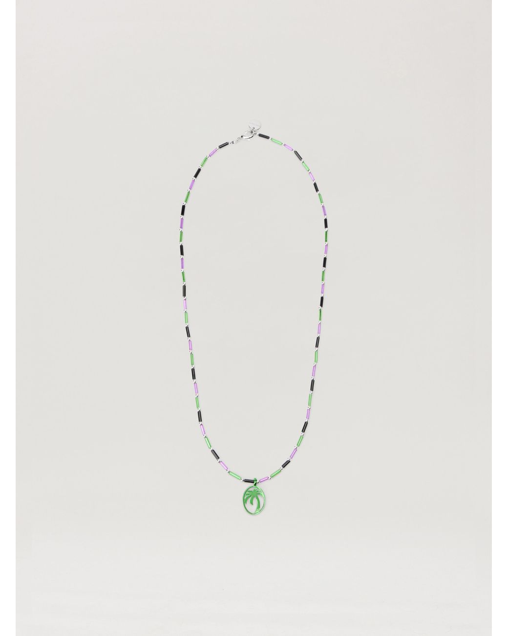 Exquisitely crafted necklace with multicoloured beads and a distinctive palm motif pendant. Features an intricate green palm motif pendant Composed of multicoloured tubular beads Secure metal clasp fastening Designed with an alternating bead pattern Accented with silver-tone spacer beads Versatile for layered styling Colour: white