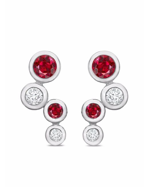 Women's White 18Kt Bubbles Diamond And Ruby Earrings