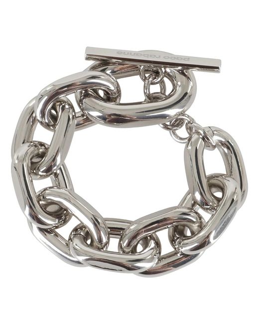 Elevate your style with this Rabanne XL link bracelet in silver. Featuring a branded closure, this accessory is a must-have for any fashion-forward woman. Made of 100% aluminium and other fibres. Colour: metallic