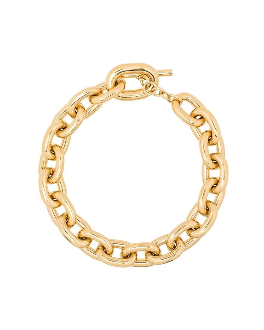 Elevate your casual look with this stunning gold necklace from Paco Rabanne. Made with 95% aluminium and 5% brass, this accessory is perfect for adult women who appreciate quality and style. Product Code: 20Pbb 0015Met 077.