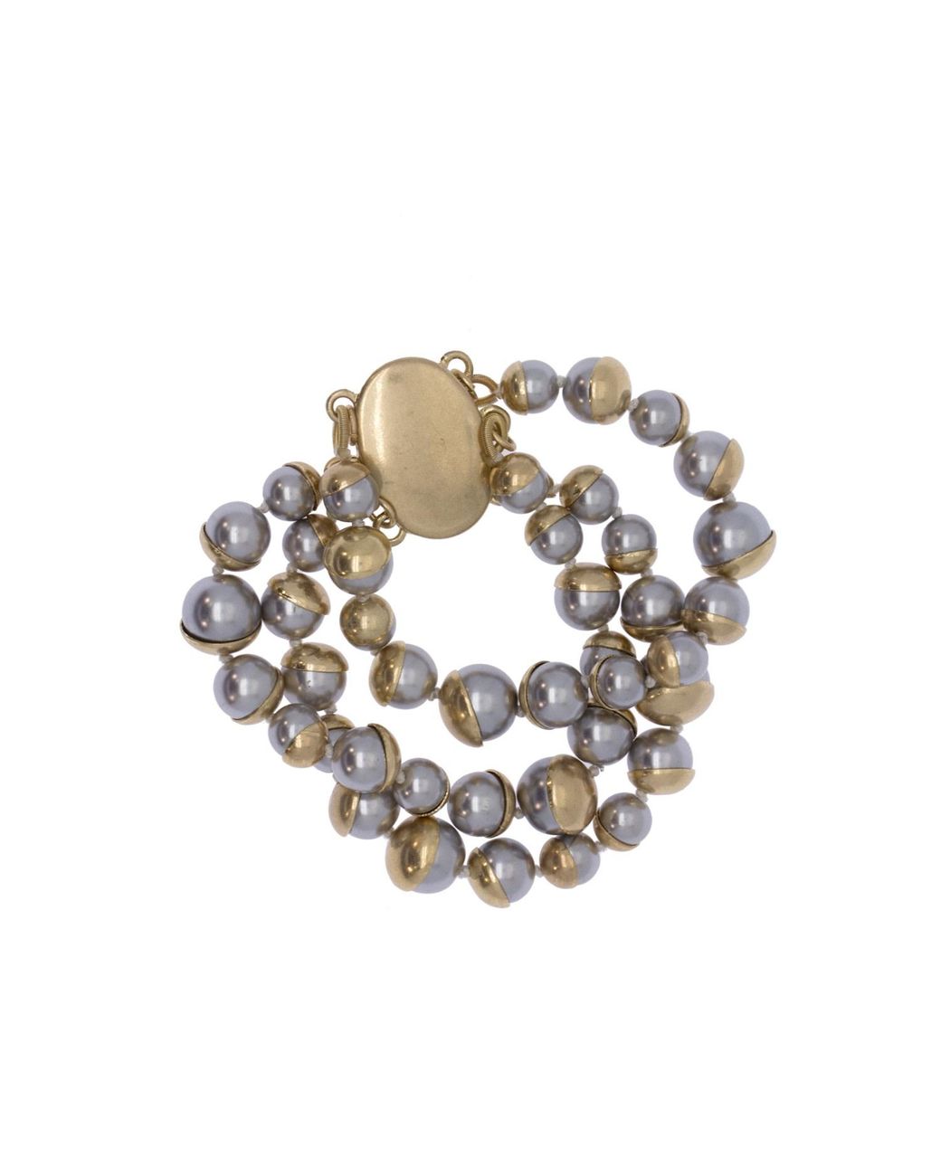 Women's Metallic Half Moon Pearl Statement Bracelet