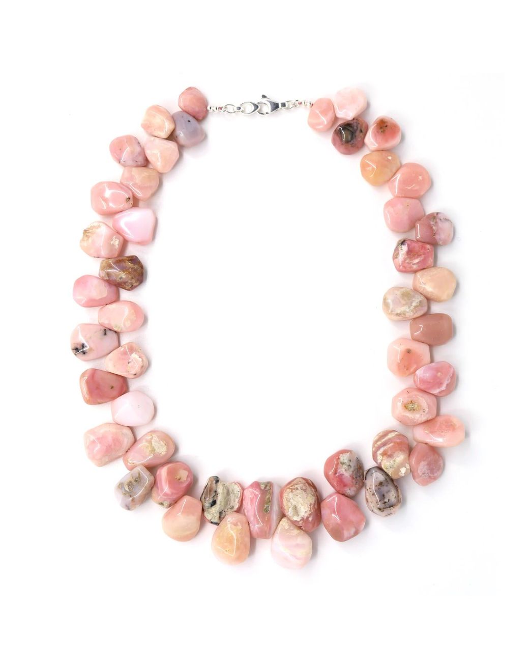 Teardrop-shaped beads cascade in an alternating pattern, creating a gentle rhythm of soft tones that draw the eye. Some stones feature raw, natural surfaces that reveal the unique character of each gem, like nature’s own fingerprint. The unique arrangement adds movement and a playful elegance, giving the piece a light, graceful feel. The details - Strung with sleek pink silk thread and fancy sterling silver clasp. Gemstones in their natural form are imperfect as such, no two stones are alike which add to the character and the beauty of the stone. One-of-a-kind. Made in Canada. We passionately believe in sourcing and using the best quality gemstones for our collections. In our opinion, a little bit of wear and tear is a sign that your jewellery is loved and has been enjoyed! However, we appreciate that you will want to protect your special piece and keep it looking good for as long as possible. Here's what we recommend - Avoid contact with water, perfumes, moisturizers, and cleaning products. Polish your jewellery with a cotton cloth or jewellery cleaning cloth only. Store your jewellery in the bag it came in or in a jewellery box. Colour: pink
