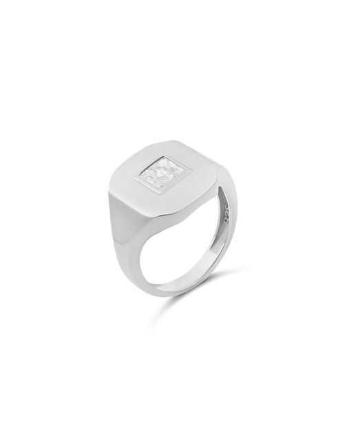 Make a bold move with this chunky statement ring that demands attention on your finger. Oversized and unapologetically eye-catching, it's the perfect accessory to elevate any outfit from ordinary to unforgettable. About this item: Material: .925 Sterling Silver Gold: 14k Gold Plated Silver: Rhodium Plated Stones: Cubic zirconia Shiny finish Recommended to remove before showering, washing hands, swimming or any activities involving water. Avoid chemicals such as soaps, lotions, and perfumes. Store in sealed pouch when not wearing. Colour: white