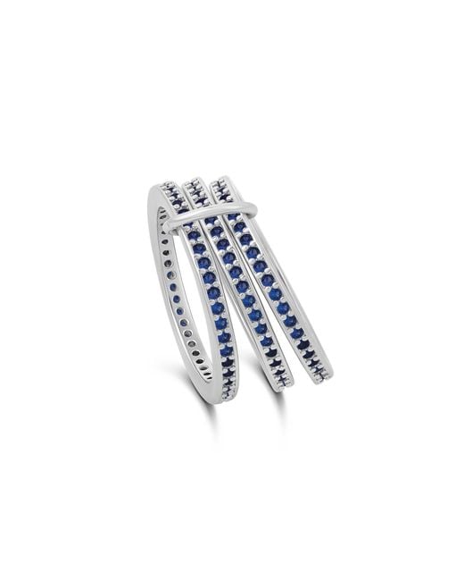 Go bold with these stack rings that begs to be worn. The glittering pave band sparkles from every angle, giving you endless styling possibilities. Wear it as a statement solo or stack it high with complementary pieces for maximum dazzle. About this item: Material: 18K Gold Filled Silver: Rhodium Plated Stones: Cubic Zirconia Recommended to remove before showering, washing hands, swimming or any activities involving water. Avoid chemicals such as soaps, lotions, and perfumes. Store in sealed pouch when not wearing. Colour: blue