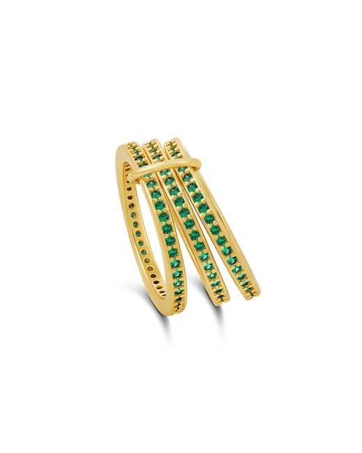 Go bold with these stack rings that begs to be worn. The glittering pave band sparkles from every angle, giving you endless styling possibilities. Wear it as a statement solo or stack it high with complementary pieces for maximum dazzle. About this item: Material: 18K Gold Filled Silver: Rhodium Plated Stones: Cubic Zirconia Recommended to remove before showering, washing hands, swimming or any activities involving water. Avoid chemicals such as soaps, lotions, and perfumes. Store in sealed pouch when not wearing. Colour: yellow