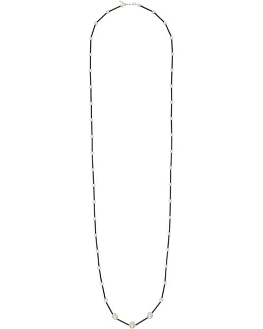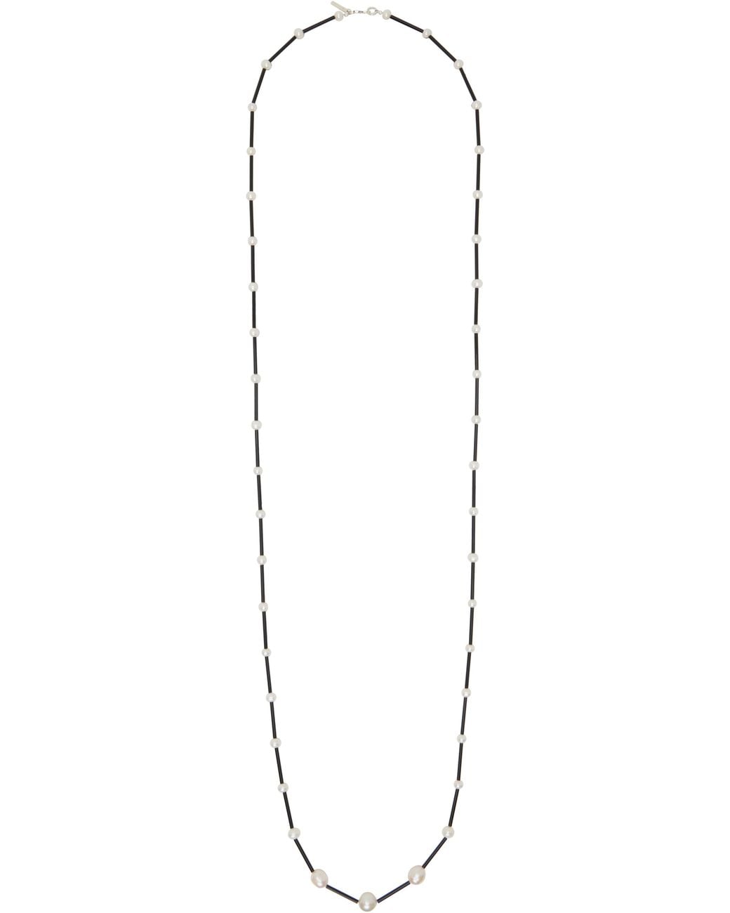 Handcrafted glass cylindrical-bead necklace in black. · Freshwater pearl beads at length · Logo plaque at hook fastening · Sterling silver hardware · L52 Supplier color: White Pearl Colour: black