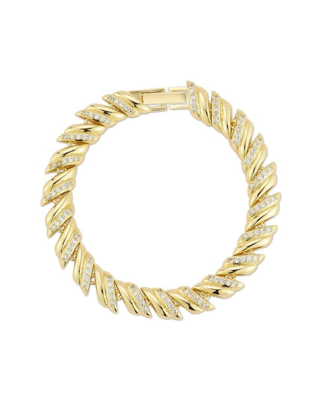 About the brand: High-quality, fun, & fabulous jewellery. Gold-plated Brass Cubic zirconia Approximately 6.5in long Foldover clasp closure Imported Colour: metallic