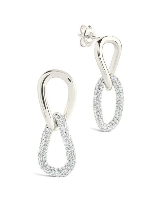 Women's White Silver Cz Taissa Chain Link Stud Earrings