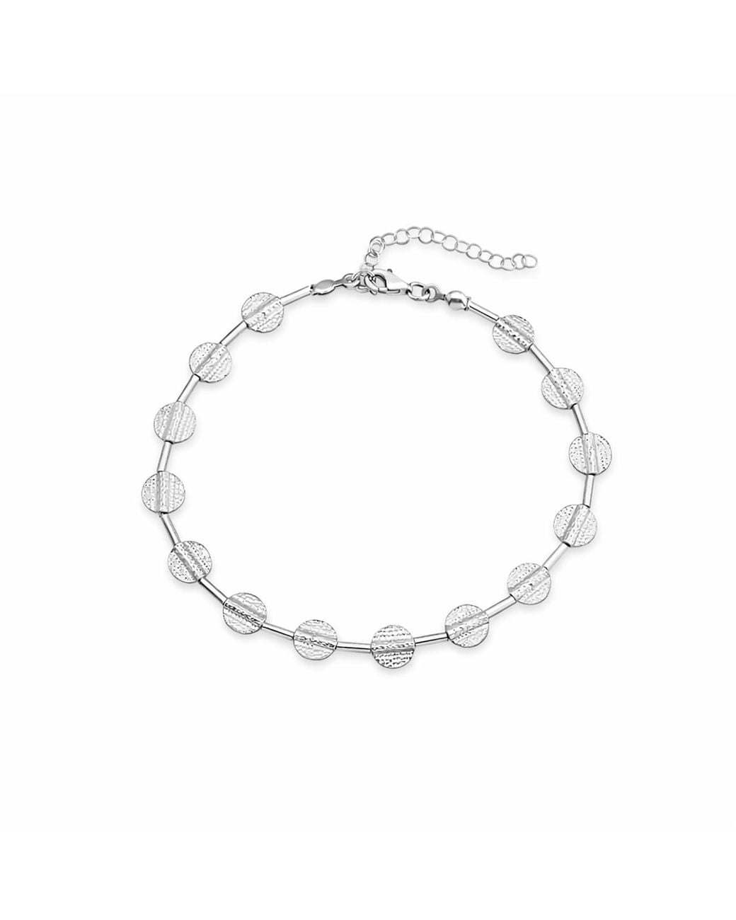 A delicate yet striking anklet designed to shimmer with every step ✨ This handmade piece features gold-plated textured discs strung on a transparent line, creating a light and airy “floating” effect around your ankle. Effortless, elegant, and perfect for summer looks. Item Details: Made from 925 sterling silver Transparent string (fishing line) design Textured disc details Nickel-free and hypoallergenic Contact with perfume and chemicals may cause the silver pendant to tarnish and the cord to darken. Store your necklace in a closed box when not in use. Exposure to air can accelerate tarnishing. You can clean the pendant with a silver cleaning solution if needed. 925 sterling silver is a lifetime metal — even if it tarnishes, you can have it professionally cleaned and re-plated, allowing you to use it again and again for many years. Colour: metallic
