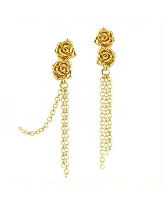Women's Metallic Purelei Plated Drop Earrings – Double Rose & Chain – Luxury Handmade Jewellery For