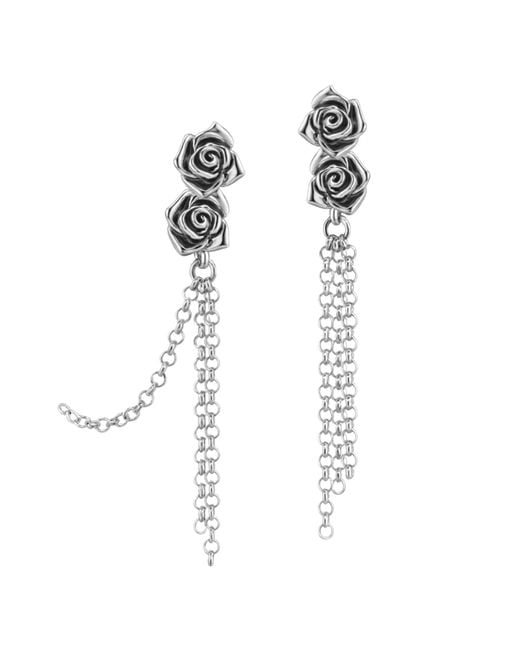 Women's Metallic Purelei Sterling Drop Earrings – Double Rose & Chain – Handmade Italian Jewellery For