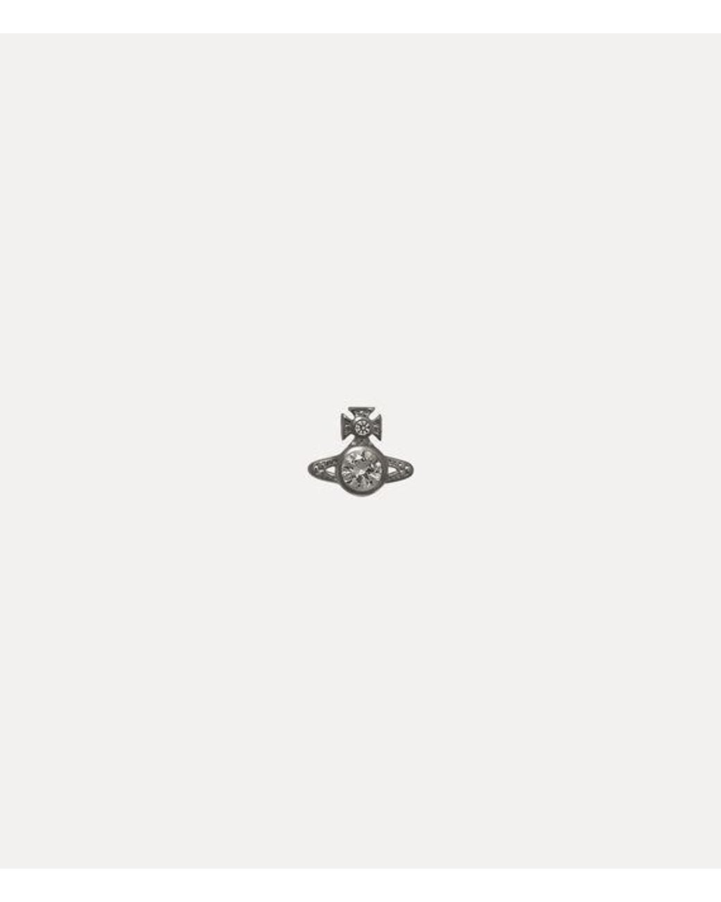 Our Man. London Orb single stud is a signature house style, featuring a timeless gunmetal-tone orb silhouette that recalls Vivienne's vision of launching tradition into the future. Centred with a sparkling grey cubic zirconia crystal, the cross top is accented with a delicate tonal stone, while intricate pressed beading if offered along the Saturn ring. Colour: white