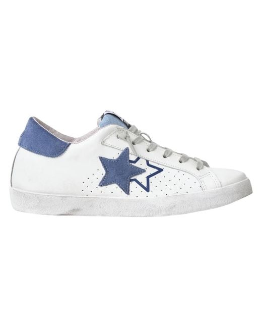 2Star trainers — low-top leather trainers with a pigskin lining and a cushioned polyurethane insole. Designed for comfortable everyday wear with a durable PVC sole. Key attributes: White | Bianco | Leather | Lace-up fastening | Cushioned insole | Low-top silhouette | Round toe | Composition & care: Lining: extra-soft pigskin | Insole: polyurethane base covered with cow-suede leather | Upper: cowhide leather | Sole: 100% PVC Colour: blue