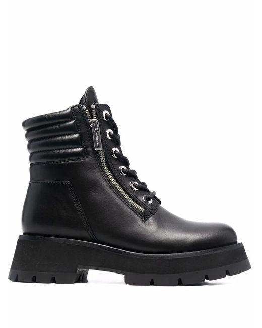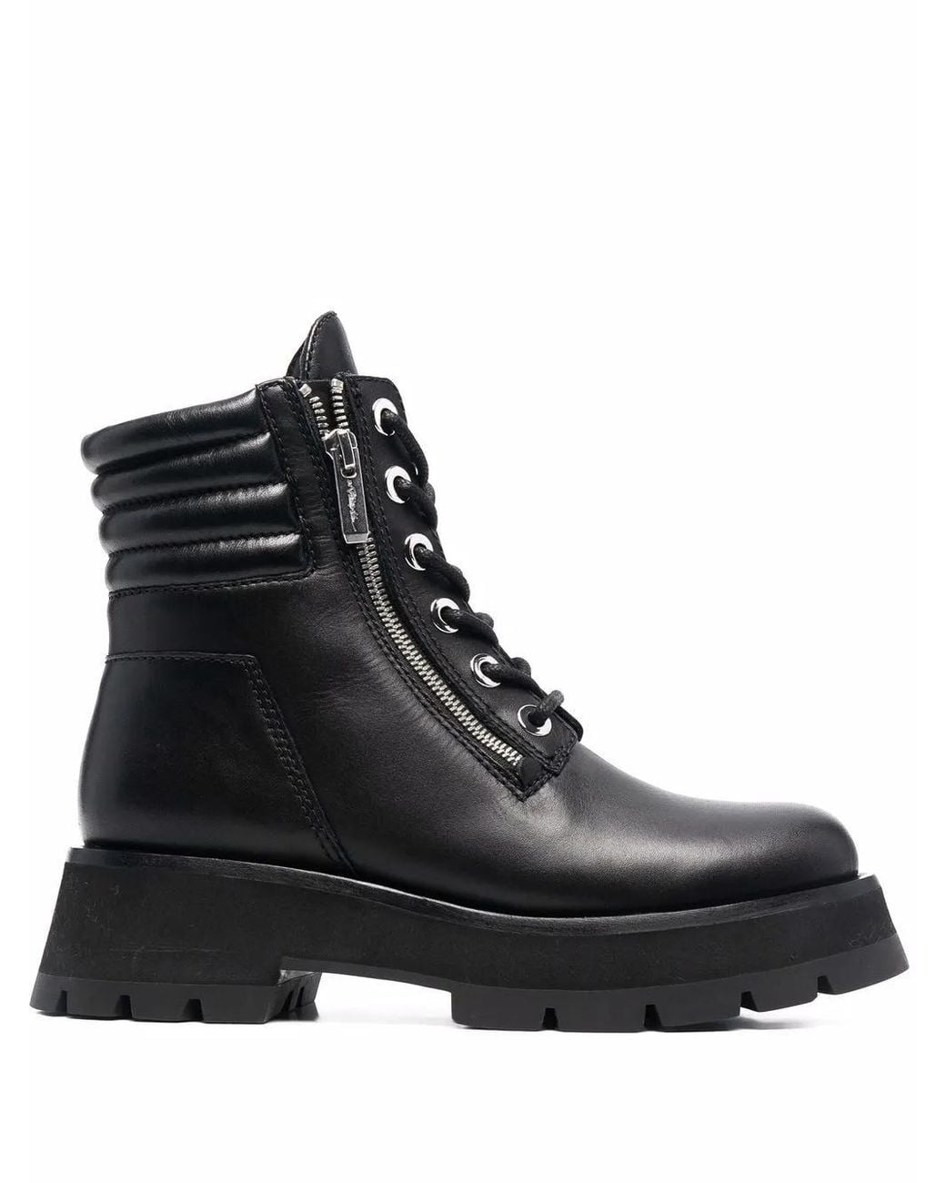 Black calf leather round toe front lace-up fastening short side zip fastening padded ankle rubber lug sole Size: 39. Gender: Female. Material:Calf Leather. Colour: black