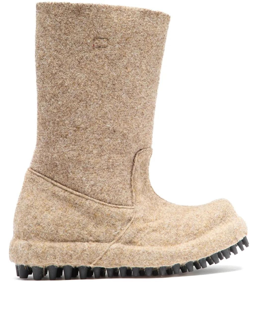 Brown felt texture pull-on style ridged sole tonal topstitching Size: 39. Gender: Male. Material:Fabric/Fabric/Rubber. Colour: natural