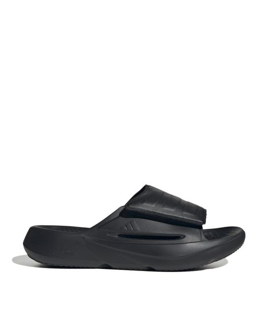 Slip into comfort with these adidas slides. The Lightstrike cushioning is ultra lightweight, making this pair perfect for days when you're on the go. A synthetic upper with an adjustable strap lets you find the right fit, while a textile lining provides a soft feel against your foot. The modern design is finished with a synthetic outsole, offering the grip you need. Colour: black