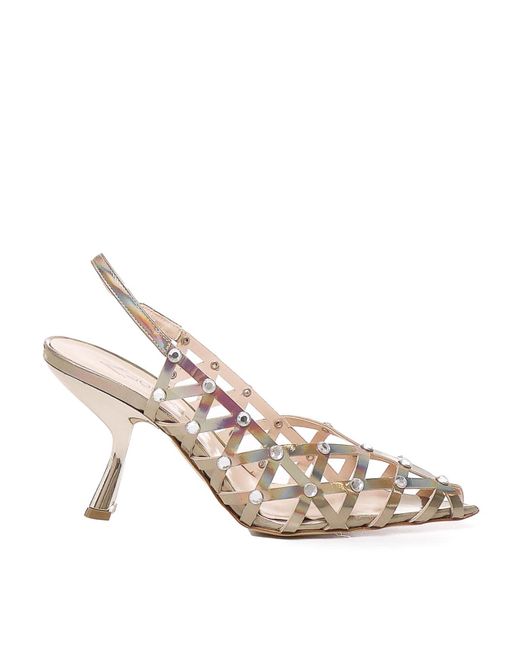 Metallic Leather Ankle Strap Sandals With Heel 14Cm - Multicolour