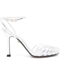 Go to FARFETCHDark silver strap thin strips stiletto heel buckle fastening metallic finish Size: 41. Gender: Female. Material:Calf Leather/Calf Leather/Calf Leather/Rubber. Colour: metallic
