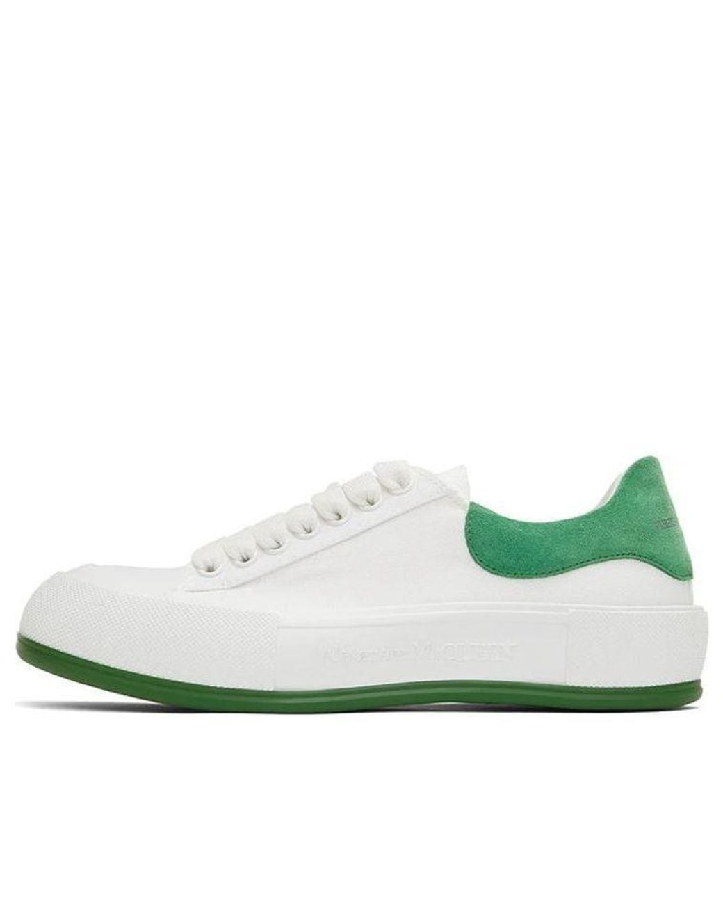 Shop the Alexander McQueen Deck Skate Plimsoll Lace Up 'White Green Suede'. Upgrade your shoes collection today! Colour: white