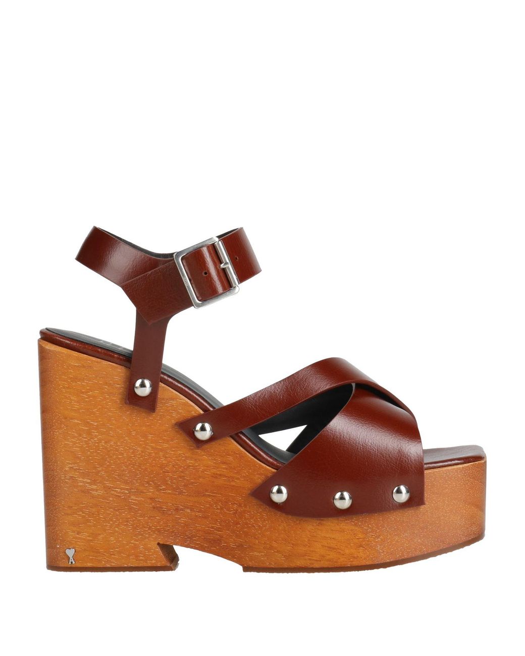AMI ALEXANDRE MATTIUSSI. sandals, leather, plain colour, no appliqués, buckle-fastening ankle strap, square toe, block heel, rubber sole, leather lining, contains non-textile parts of animal origin. Leather.