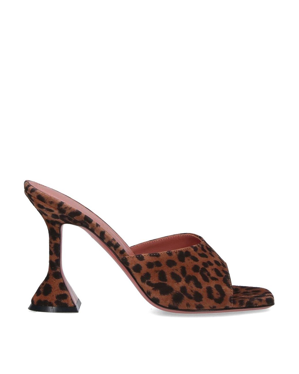 Amina muaddi lupita sandals, in brown calfskin, all-over animal print, square toe, upper band, sculptural heel, slip-on fit, leather sole. Colour: brown