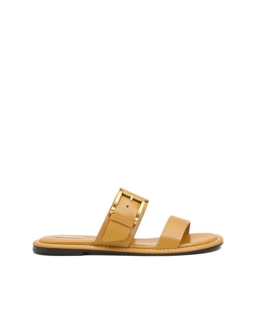 Ami Paris Buckle Flat Sandals are a low-profile leather sandal with an adjustable buckle strap and leather sole, designed for daily warm-weather wear. Key attributes: Beige | Natural | Cow leather | Smooth leather lining | Anti-slip leather sole | Flat sole | Adjustable buckle strap | Smooth nappa leather upper | Visible topstitching | Brass buckle detail | Dimensions & fit: Fits true to size — take your normal size. | Composition & care: Upper: 100% Cow Leather | Main lining: 100% Cow Leather | Outsole: 80% Cow Leather, 20% Rubber | Do not wash. Colour: natural