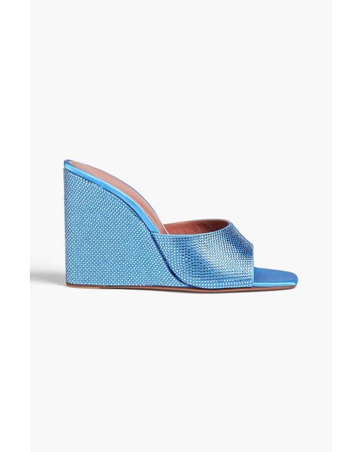 Women's Blue Lupita Iridescent Crystal-embellished Satin Wedge Mules