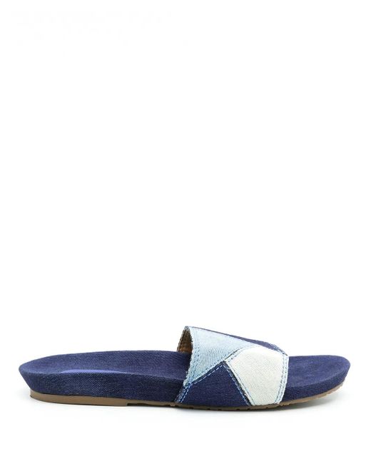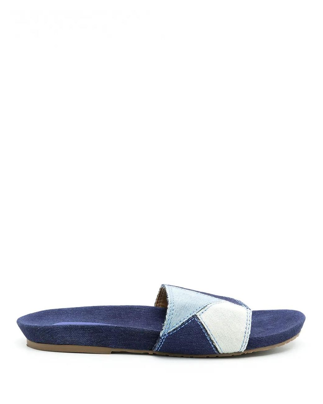 Blue; cotton; slip-on style; contrasting panel detail; flat sole. Size: 38. Gender: Female. Material:Cotton. Colour: blue