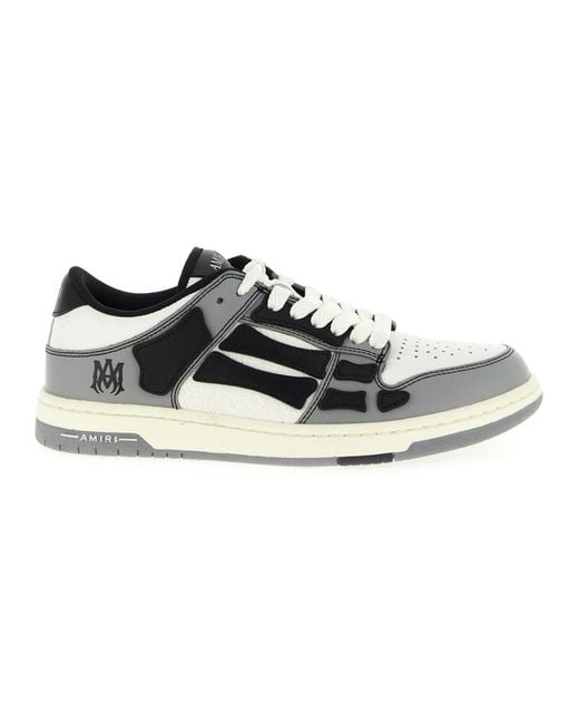 Amiri Varsity Skel Top Low trainers combine cracked (craquelé) leather panelling with the label's signature Skel detailing for a statement-ready casual shoe. The low-top silhouette and two-tone rubber sole make them suitable for everyday streetwear and elevated casual looks. Key attributes: Multicolour | Grey | Leather | Lace-up closure | Padded low collar | Rubber outsole | Craquelé (cracked) leather panels | Perforated details | Signature Skel appliqué | Two-tone rubber sole | Leather logo label at tongue | Dimensions & fit: EU sizing | Composition & care: Upper: 100% leather | Sole: 100% rubber | Spot clean only. Do not wash, bleach, tumble dry, iron, or dry clean. Colour: black
