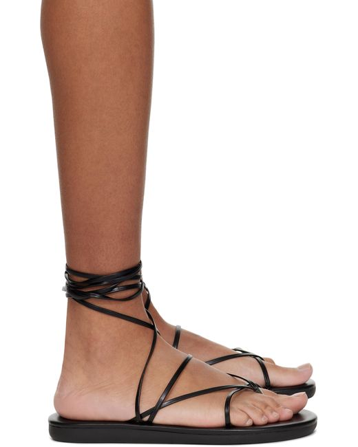 Handcrafted buffed faux-leather flip flops in black. · Thong-style strap at open toe · Self-tie wraparound ankle straps · Logo embossed at padded faux-leather footbed · Logo-treaded rubber sole Supplier color: Black Colour: brown