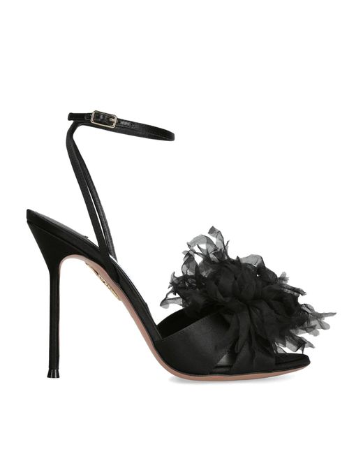 Florentine label Aquazzura has always taken a maximalist approach to its footwear, designing shoes that are both statement-making and utterly feminine. Case in point? The Poème sandals. Crafted in Italy from luminous satin, the pair is blooming with bold organza flowers across the toe. Colour: black