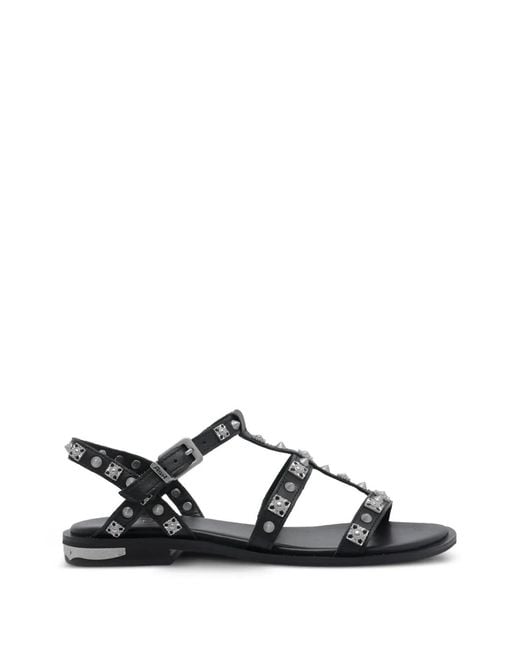 Women's Black Parka Stud-Embellished Sandals