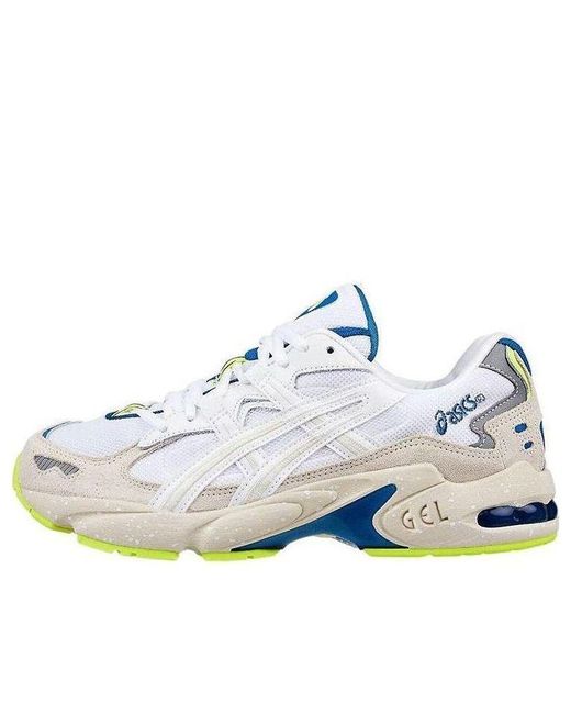 If you're in the market for a new running shoe, the Asics Gel Kayano 5 OG "White Tan" is worth considering. This model was released in 1999 and has been brought back for a limited time this June. The upper is made of mesh and suede with white leather Tiger stripes, 3M reflective detailing, and blue and yellow accents. The EVA midsole houses a visible Gel unit in the heel, providing cushioning and traction. Colour: white