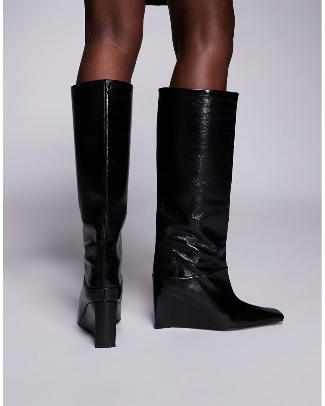 Shoes by ASOS DESIGN Knee length Wide cuff Slim toe Wedge heel. Colour: black
