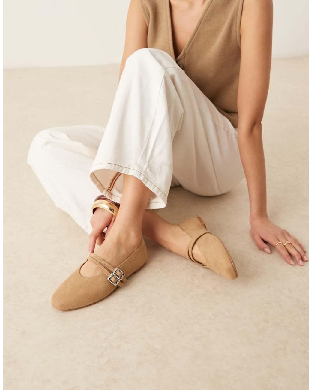 Shoes by ASOS DESIGN Adjustable straps Pin-buckle fastening Round toe Flat sole. Colour: natural