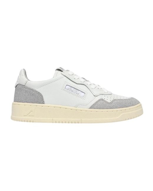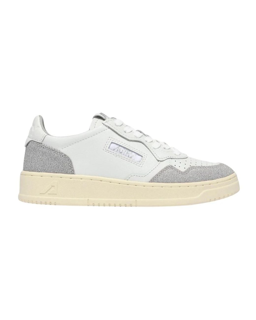 Autry Medalist Low Trainers blend leather and suede panels with a retro low-top silhouette for everyday off-duty wear. Made in Indonesia. Key attributes: White | Grey | Leather and suede | Breathable (micro-perforated toe) | Rubber sole for traction and support | Front lacing | Flat cotton laces | Padded collar | Raised leather sockliner | Round toe | Panel design | Logo detail on heel and side | Tone-on-tone stitching | Dimensions & fit: EU 37 | Composition & care: 100% leather Colour: white