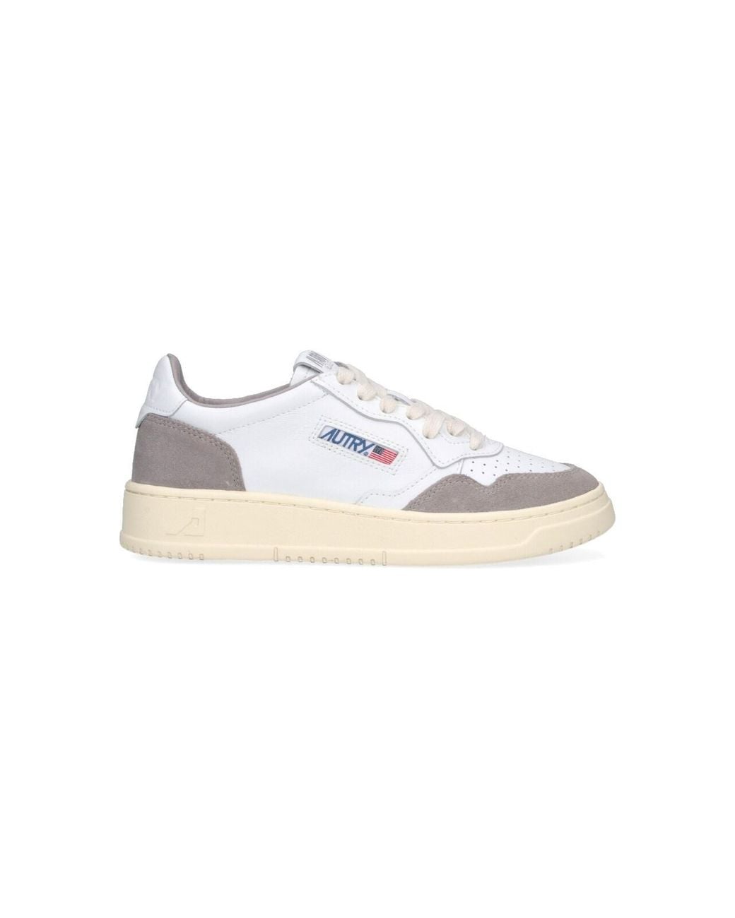 Autry Low "Medalist" white leather sneakers with round toe, lace-up closure, logo label on the tongue, multicolor logo tag on the side, back tab, contrast suede trim, rubber sole. - Sole: 100% rubber
