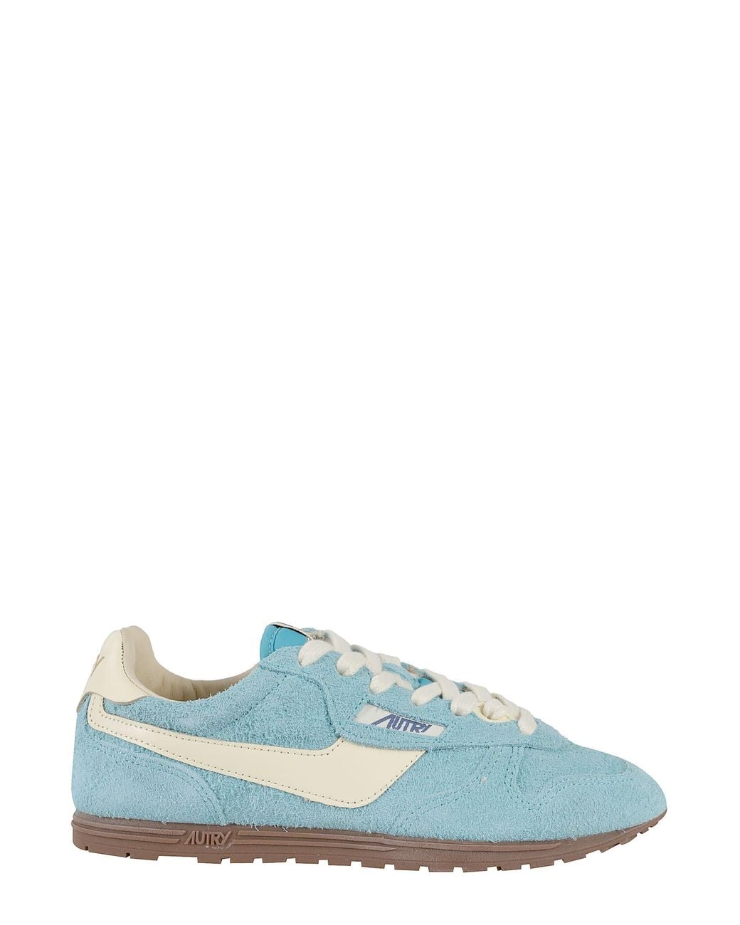 Windspin Low sneakers - Autry - Sky color - Used-effect suede upper - Smooth leather side inserts - Almond toe - Logo labeled tongue - Contrasting smooth leather heel - Cotton lace-up closure - Rubber sole