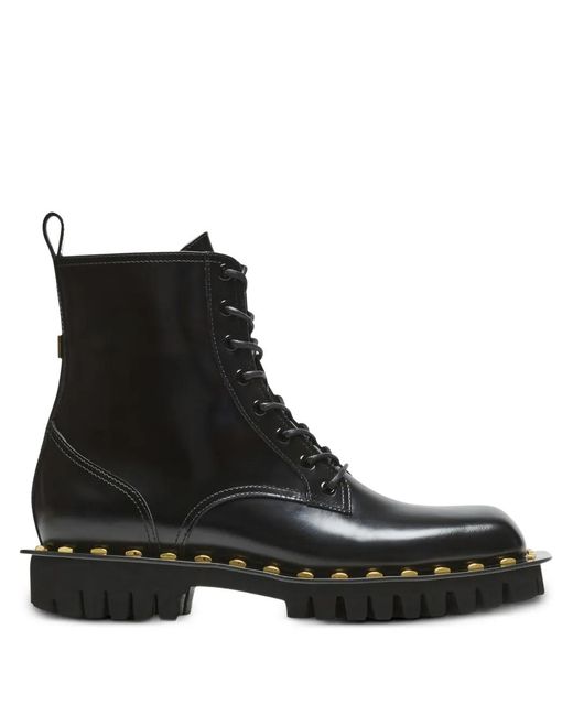 Black gold-tone studs lace-up fastening side zip fastening lug sole Size: 39. Gender: Male. Material:CALFSKIN/Rubber/Calf Leather. Colour: black