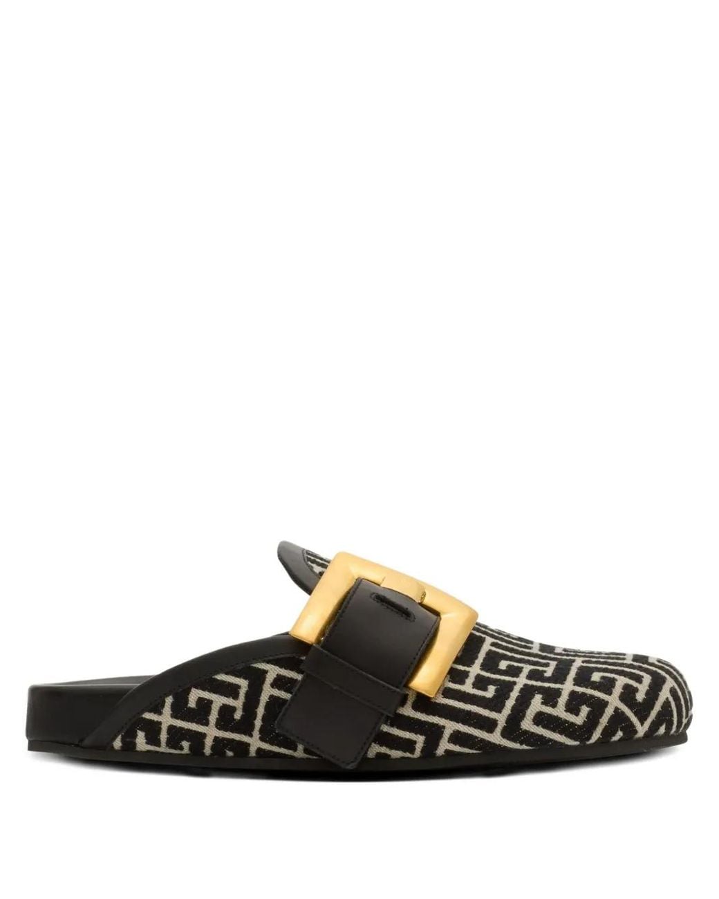 Anthem Square-Buckle Flat Mules - Black