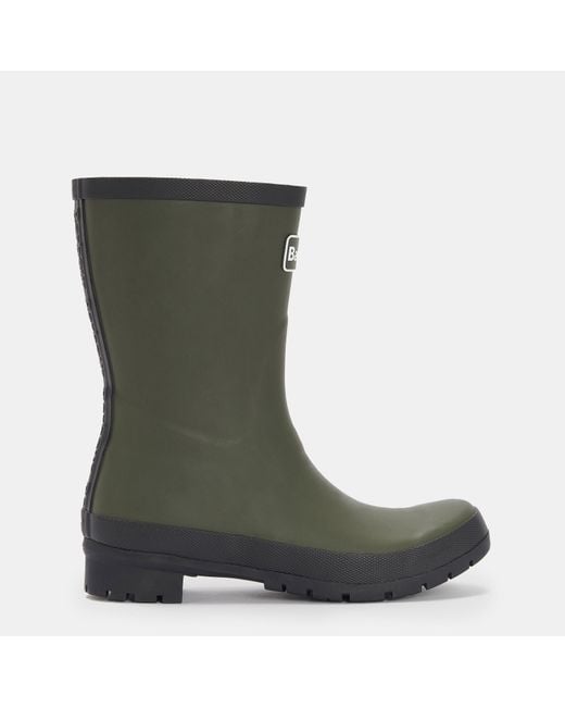 Traditional British country style meets modern practicality in these Barbour wellington boots. A mid-height design makes these boots perfect for everyday wear, while the robust rubber construction ensures reliable protection from the elements. The chunky cleated sole provides excellent grip on various terrains, complemented by a reinforced toe cap for added durability. Featuring the signature Barbour branding on both the exterior and a subtle embossed detail along the back, these boots maintain the heritage quality the brand is known for. Product Highlights: * The mid-height design offers versatile wear and easy movement while maintaining essential protection from wet weather. * A sturdy rubber construction with reinforced toe cap ensures long-lasting durability for regular countryside walks. * The cleated sole provides reliable grip on challenging surfaces, from muddy fields to wet pavements. * Comfortable fit with a practical height makes these boots ideal for daily wear during the British seasons. * Classic Barbour branding details showcase the heritage quality while maintaining a timeless aesthetic. Colour: green