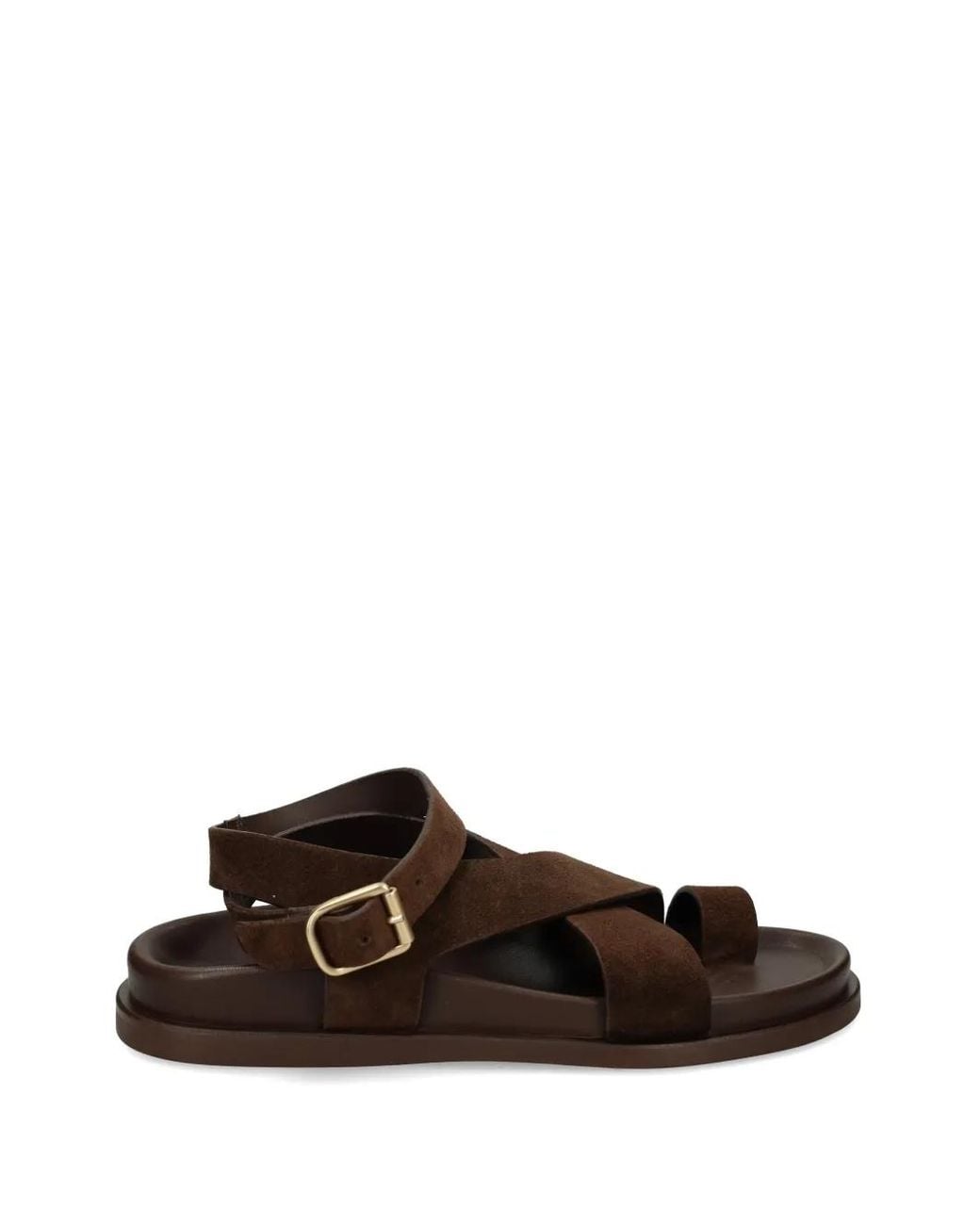 Brown crossover strap buckle fastening flat sole Size: 37. Gender: Female. Material:Leather/Other Materials. Colour: brown