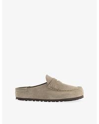 Go to FARFETCHTaupe stitched detailing padded insole rubber sole open-back design logo patch Size: 39 Regular. Gender: Male. Material:Suede/Rubber/Polyethylene vinyl acetate (PEVA)/Suede. Colour: brown