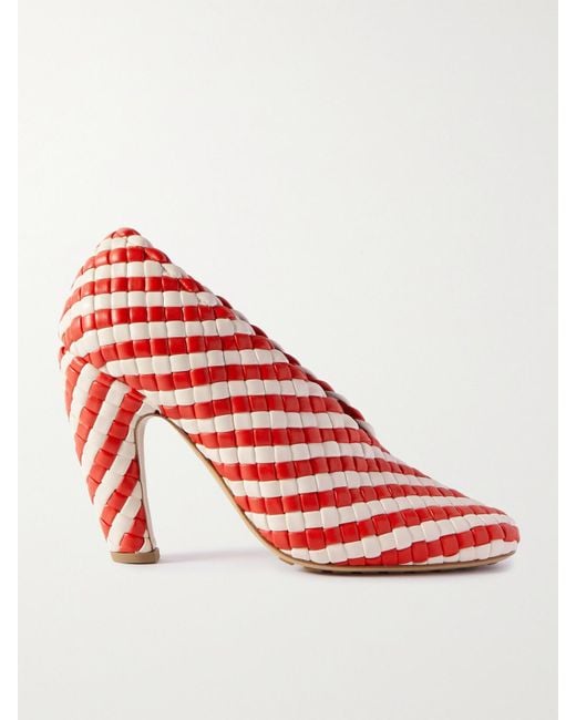 Women's Red Canalazzo Striped Intrecciato Leather Court Shoes
