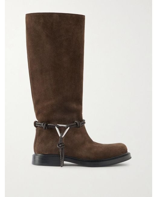 Women's Brown James Intrecciato Leather-Trimmed Suede Knee Boots