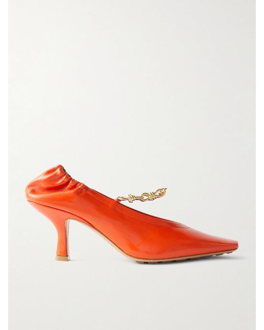 - Melbourne Embellished Glossed Crinkled-Leather Pumps