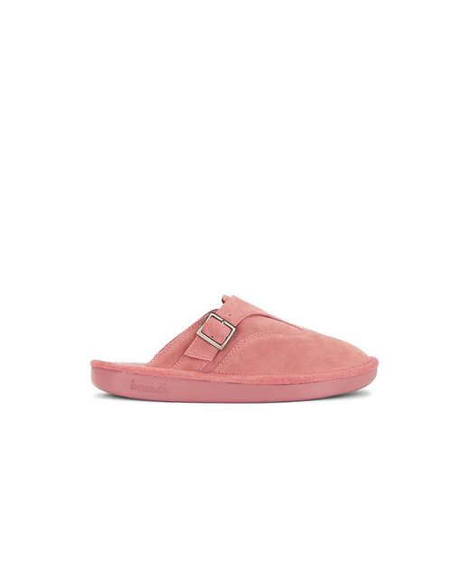 Brunch Amour in Pink. Size 10/10.5. Also in 11/11.5, 12/12.5, 13/13.5. Brunch Amour in Pink. Size 11/11.5, 12/12.5, 13/13.5. Suede upper with manmade sole. Made in China. Slip-on styling. Contoured footbed. Adjustable buckled strap. Logo at vamp. BRUR-MZ18. AM01PI01M.