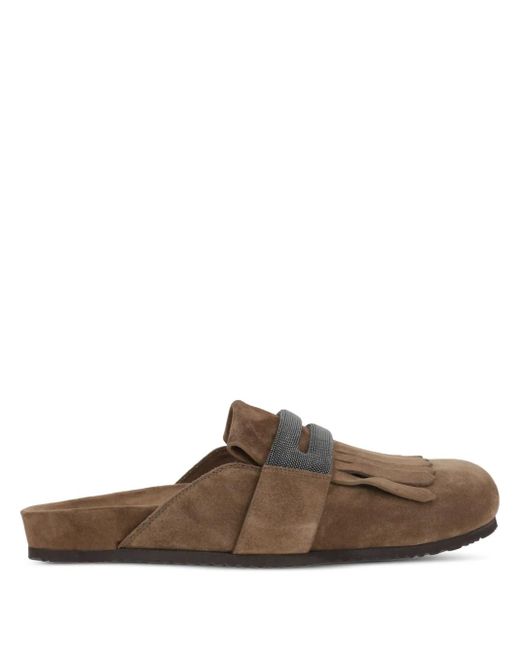 Tasselled Suede Collapsible-Heel Loafers - Blue